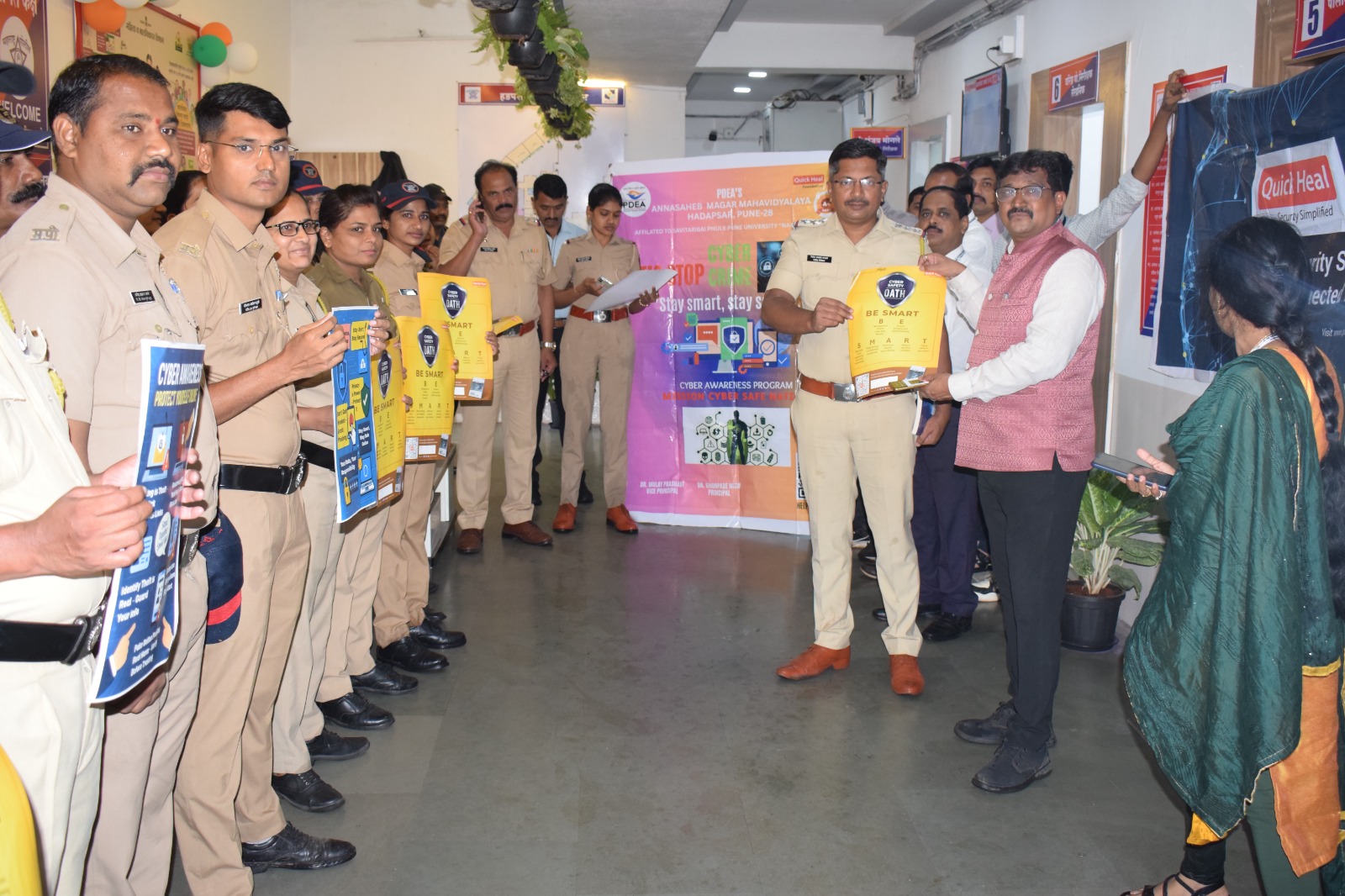 पुणे जिल्हा शिक्षण मंडळाच्या अण्णासाहेब मगर महाविद्यालयाच्या संगणकशास्त्राच्या विद्यार्थ्यांनी हडपसर पोलीस ठाण्यात पोलीस कर्मचाऱ्यांसाठी क्विक हिल फाउंडेशनच्या ‘सायबर सुरक्षेसाठी सायबर शिक्षण’ या उपक्रमाच्या माध्यमातून सायबर सुरक्षेविषयी जनजागृतीसाठी विशेष उपक्रमाचे आयोजन केले होते.