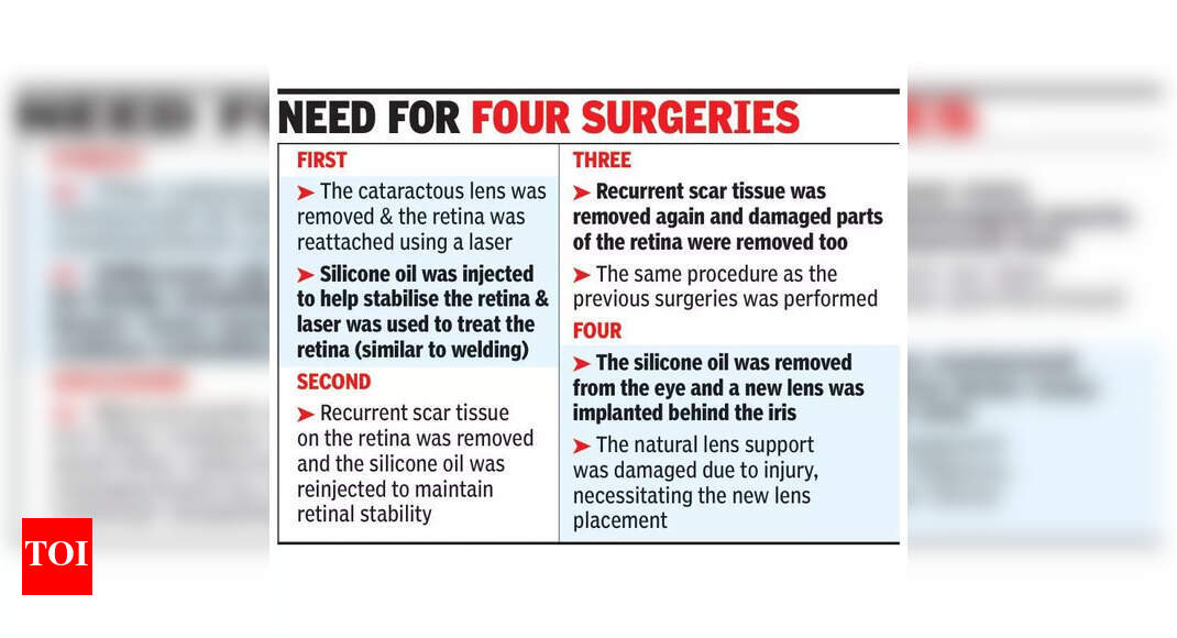 पुणे: शहरातील नऊ वर्षांच्या मुलाला एका क्रिकेटच्या बॉलमुळे डोळ्यासमोर दुखापत झाली होती, ज्यामुळे त्याला जवळजवळ त्याच्या दृष्टीने किंमत मोजावी लागली. त्याच्या पालकांच्या प्रतिक्रियेची भीती बाळगून, त्याने त्यांना दोन महिन्यांपर्यंत दुखापतीबद्दल सांगण्यास उशीर केला, त्या काळात रेटिनल डागामुळे त्याची दृष्टी लक्षणीयरीत्या बिघडली होती. सुदैवाने, दोन वर्षांत चार शस्त्रक्रिया केल्यानंतर, अखेरीस ही दृष्टी पुनर्संचयित झाली.नॅशनल इन्स्टिट्यूट ऑफ नेत्ररोगशास्त्रातील नेत्ररोग तज्ज्ञ डॉ. हर्ष जैन म्हणाले, “त्याच्या पालकांना माहिती देण्यास उशीर झाल्यामुळे दुखापत झाली आणि उजव्या डोळ्यात अंधुकपणा निर्माण झाला. मार्च २०२23 मध्ये त्याला आमच्या रुग्णालयात आणले गेले. आम्ही त्याच्या दुखापतीमुळे रिटिनल म्हणून आघात केले गेले, जे रिटिनल आहे आणि तेथील रेटिनलच्या आघाताने त्याचे आघात झाले आहे, जे रिटिनल आहे आणि तेथील रेटिनलच्या कारणास्तव उधळपट्टी झाली आहे. इजा.“एक क्लेशकारक subluxated मोतीबिंदू डोळ्याच्या दुखापतीचा एक प्रकार आहे जेव्हा डोळ्यातील लेन्स आघात झाल्यामुळे अंशतः विस्थापित (subluxated) होते तेव्हा बहुतेकदा मोतीबिंदू तयार होतो.उपचार प्रक्रियेदरम्यान सहाय्य करणारे डॉ. जैन म्हणाले, “रेटिना परत जागी रेटिनाचे निराकरण करण्यासाठी डाग काढून टाकावे लागले, जे शस्त्रक्रियेचा सर्वात जटिल भाग होता. प्रथम, मुलांमध्ये डागलेल्या ऊतकांना काढून टाकणे कठीण आहे आणि दुसरे म्हणजे नेहमीच ती परत येऊ शकते, ज्यामुळे ती पुन्हा पुन्हा येऊ शकते.”एप्रिल २०२23 मध्ये जेव्हा डॉक्टरांनी प्रथमच रुग्णावर काम केले तेव्हा त्याने त्यांच्या शरीराची दुरुस्ती यंत्रणा अधिक मजबूत असल्याने प्रौढांपेक्षा मुलांमध्ये अधिक सामान्य असलेल्या डागामुळे त्याने पुनरावृत्ती केली. रेटिना सल्लागार डॉ. मौनिका बोलिस्टी, उपचार प्रक्रियेचा एक भाग, म्हणाले, “डागांपासून मुक्त होण्यासाठी आम्ही सप्टेंबर 2023 मध्ये एक, त्यानंतर फेब्रुवारी 2024 मध्ये आणखी एक आणि जुलै 2024 मधील अंतिम एक आयरिसच्या मागे लेन्सला मागे टाकले आणि त्यानंतर रिटिनच्या पाठीमागे लेन्सचा वापर केला. या शस्त्रक्रियेनंतर, सहा महिन्यांहून अधिक काळ नियमित पाठपुरावा केला गेला. यावर्षी जुलै महिन्यात झालेल्या शेवटच्या पाठपुराव्या दरम्यान, रुग्णाला पुन्हा 15-20 फूट दृष्टी मिळाली. “चार शस्त्रक्रियेच्या आवश्यकतेनुसार, शस्त्रक्रिया करणार्या एनआयओ सुपर स्पेशलिटी हॉस्पिटलचे संचालक डॉ. आदित्य केलकर म्हणाले, “पहिल्या शस्त्रक्रियेमध्ये मोतीबिंदू काढून टाकला गेला आणि रेटिना लेसरच्या मदतीने पुन्हा जोडली गेली. नंतर सिलिकॉन तेल जोडले गेले आणि लेसरचा वाप