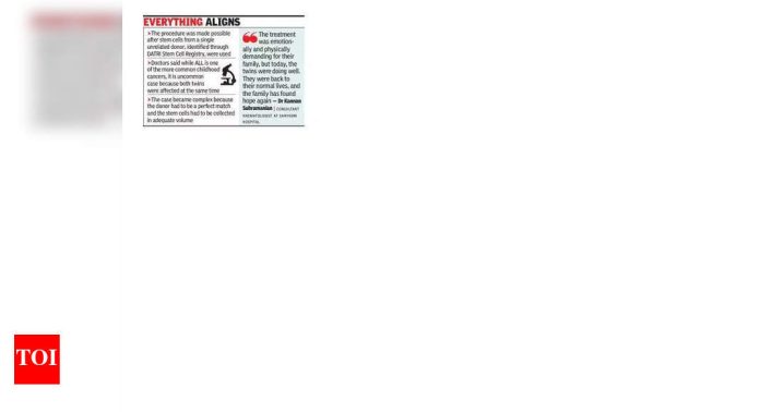 पुणे: डॉक्टरांनी दुर्मिळ प्रकरण म्हणून वर्णन केलेल्या गोष्टींमध्ये, साडेतीन वर्षांच्या जुळ्या बहिणींना, ज्यांना उच्च-जोखीम तीव्र लिम्फोब्लास्टिक ल्युकेमिया (सर्व) असल्याचे निदान झाले, पुणे येथील सह्याद्री हॉस्पिटलमध्ये एकाच वेळी स्टेम सेल ट्रान्सप्लांट्स झाले.डेट्री स्टेम सेल रेजिस्ट्रीद्वारे ओळखल्या जाणार्या एकाच असंबंधित देणगीदाराच्या स्टेम सेल्सचा वापर केल्यावर ही प्रक्रिया शक्य झाली. डॉक्टर म्हणाले की, बालपणातील सर्वसाधारण कर्करोगांपैकी एक आहे, परंतु हे असामान्य प्रकरण आहे कारण एकाच वेळी दोन्ही जुळ्या मुलांवर परिणाम झाला. त्यांनी जोडले की, एक देणगी शोधण्याची गरज निर्माण झाली ज्याचे स्टेम पेशी दोन्ही भावंडांशी आणि एकाच वेळी प्रत्यारोपण करण्यासाठी पुरेसे प्रमाणात जुळतील.“हे प्रकरण गुंतागुंतीचे ठरले कारण देणगीदाराला दोन्ही मुलांसाठी एक परिपूर्ण सामना असावा लागला होता, स्टेम पेशींना पुरेसे खंडात गोळा करावे लागले आणि सुरक्षितपणे पुढे जाण्यासाठी मुलींना एकाच वेळी क्षमा करावी लागली,” असे सौहाद्री रुग्णालयाचे सल्लागार रक्तशास्त्रज्ञ डॉ.विशिष्ट निरीक्षणाच्या कालावधीनंतर प्रत्यारोपण यशस्वी घोषित केले गेले. जानेवारी 2022 मध्ये हे ऑपरेशन झाले असले तरी निरीक्षणाच्या कालावधीनंतर ते यशस्वी घोषित केले गेले.हैदराबादमध्ये स्टेम पेशींचे संग्रहण केले गेले आणि पुणे येथे नेले गेले, जेथे 9 जानेवारी, 2022 रोजी दोन्ही प्रत्यारोपण केले गेले. डॉक्टरांनी सांगितले की प्रकाशित साहित्य असे दर्शविते की जगभरात अशी काही प्रकरणे नोंदविली गेली आहेत जिथे एका दाताच्या स्टेम पेशी दुहेरी प्रत्यारोपणासाठी वापरल्या गेल्या.प्रत्यारोपणामध्ये एक कंडिशनिंग पथ्ये समाविष्ट होती-कर्करोगाच्या पेशी नष्ट करण्यासाठी आणि नवीन स्टेम पेशी स्वीकारण्यासाठी अस्थिमज्जा तयार करण्यासाठी तयार केलेले उपचार-त्यानंतर जवळच्या प्रत्यारोपणाच्या देखरेखीनंतर. “दोन गंभीर आजारी मुलांचे व्यवस्थापन केल्याने एकाच वेळी आव्हानाचा आणखी एक थर जोडला,” डॉ सुब्रमण्यम म्हणाले.अचूकतेसह प्रत्यारोपणाचा पाठपुरावा करण्यासाठी प्रत्यारोपणाचे चिकित्सक, हेमॅटोलॉजिस्ट, गंभीर काळजी तज्ञ आणि परिचारिकांसह अनेक आठवड्यांपासून समन्वयित एक बहु -अनुशासनात्मक टीम. रुग्णालयाच्या अधिका said ्यांनी सांगितले की दोन्ही मुले सध्या बरे होत आहेत आणि नियमित पाठपुरावा करत होता.“उपचार त्यांच्या कुटुंबासाठी भावनिक आणि शारीरिकदृष्ट्या मागणी करीत होते, परंतु आज, जुळ्या मुलांनी चांगले काम केले होते. ते त्यांच्या सामान्य जीवनाकडे परत आले आणि कुटुंबाला पुन्हा आशा मिळाली,” सह्याद्रीच्या रुग्णालयांचे हेमॅ