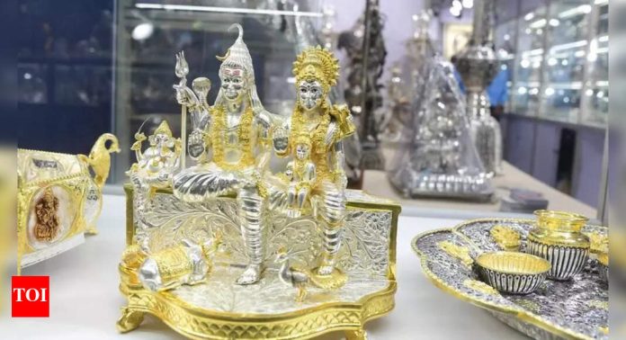पुणे: मुखवटे परिधान केलेल्या पाच माणसांनी गुरुवार पेथमधील दागिन्यांच्या दुकानात प्रवेश केला आणि 70 किलो चांदीचे दागिने आणि 5 लाख रुपये रोखले, एकत्रितपणे 67.60 लाख रुपयांची किंमत.रविवारी आणि सोमवारी हस्तक्षेप करताना रात्री ही चोरी झाली, अशी माहिती खडक पोलिसांनी दिली. ज्वेलरी स्टोअरचे मालक, मुकुंडनगर येथील रहिवासी विनोद देविचंद परमार () १) यांनी खडक पोलिस स्टेशनकडे तक्रार केली. परमार चांदीच्या दागिन्यांचा घाऊक व्यवसाय चालवितो, अशी माहिती पोलिसांनी दिली.खडक पोलिसांचे वरिष्ठ निरीक्षक शशिकांत चवन यांनी टीओआयला सांगितले की, “परमारने रविवारी रात्री आपले स्टोअर बंद केले आणि घरी परतले. सोमवारी सकाळी काही स्थानिक रहिवाशांनी त्याच्या दुकानाचे कुलूप आणि दरवाजा मोडलेले पाहिले आणि त्याला परमारला बोलावले. त्यानंतर त्यांनी स्टोअरची तपासणी केली आणि तक्रार दाखल केली. ” चवान म्हणाला, “चोरही 10,000 रुपयांच्या डीव्हीआरसह पळून गेले.” शेजारच्या दुकानांच्या सीसीटीव्ही कॅमेर्याने चोरट्यांना दुकानात फिरत आणि लूटने पळ काढला. “सीसीटीव्ही फुटेजमध्ये पाच जण स्टोअरच्या दिशेने चालत असल्याचे दिसून आले आणि लोखंडी रॉड्सचा वापर करून पुढचे दरवाजे उघडले. त्यानंतर त्यांनी बॅगमध्ये भरलेल्या त्यांच्या लूटने दुकान सोडले. त्यांनी मुखवटे घातले होते,” तो म्हणाला.